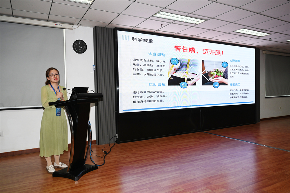 本次活动通大附院特殊选派多位权威专家现场授课、开展义诊。。。。。。。南通大学隶属医院党委委员、副院长鲁菊英详细先容了通大附院医疗资源优势及特色康健效劳。。。。。。。作为全市医疗领域标杆,,,,通大附院为立异区及周边住民提供了越发高效、便捷的医疗效劳包管。。。。。。。南通大学隶属医院康健与疾病治理中心的炊娟霞副主任医师带来了《关注肥胖症,,,,为康健 “减负”》的专题讲座。。。。。。。她深入剖析了肥胖症的形成缘故原由、对身体康健的危害,,,,以及怎样通过科学的饮食和生涯方法举行预防和改善。。。。。。。她用通俗易懂的语言和生动形象的案例,,,,让员工们深刻熟悉到肥胖症对康健的潜在威胁,,,,同时也为各人提供了适用的康健治理建议。。。。。。。?